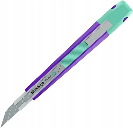 Berlingo Envy to solidny nóż biurowy 9 mm, który doskonale sprawdzi się w biurze, szkole oraz w domu. Wyposażony w metalowy korpus, zapewnia trwałość, stabilność i komfort użytkowania nawet podczas częstego cięcia papieru, kartonu, folii czy taśmy. To praktyczne narzędzie biurowe, które łączy funkcjonalność z nowoczesnym wyglądem.